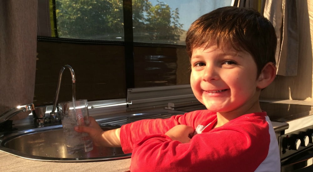 Meet Paul, Beth and their young family…dedicated WFA customers who love their home water filter system so much they decided to take one away with them in their campervan!